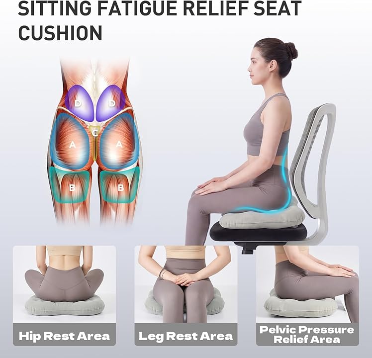 - ERGONOMIC SUPPORT PROMOTES BETTER POSTURE & HEALTH – Reduces pressure points on hips, tailbone, and lower back while supporting proper spinal alignment and improving circulation—helps prevent discomfort, fatigue, and pain during extended sitting on planes, cars, bleachers, wheelchairs, or office setups